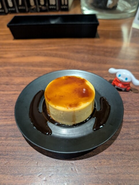 プリンは少し固めで、表面はパリッとキャメリゼされていました。別添のカラメルをかけて美味しくいただきました。