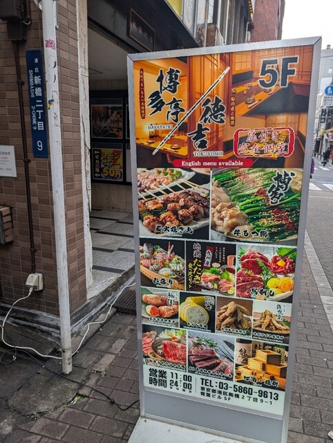 本日は新橋駅より徒歩1分ほどの所にある、博多亭さんに訪れました。ビルの5階にあり少し分かりづらいですが、入り口の所に看板があります。