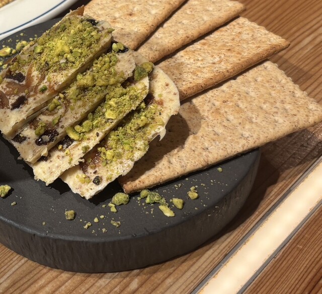 ポテサラ、六角鶏、なにかの煮込み、カツレツ、レーズンバター、リゾット、洋梨のお酒、キウイのお酒などを注文(飲むと言うより食べに来ている笑)