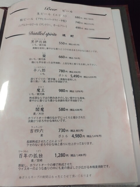 焼酎メニュー
