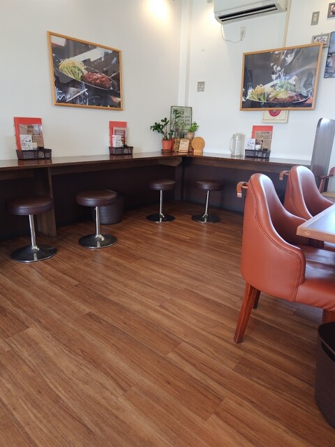 カウンター壁側に10席、中央にコの字型で10席、あとテーブル席2つ。