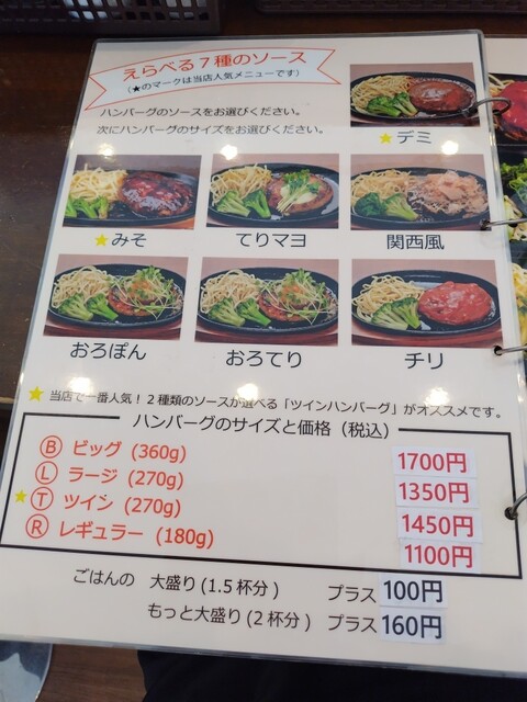 人気 No1 !! ツインハンバーグ 税込み1450円