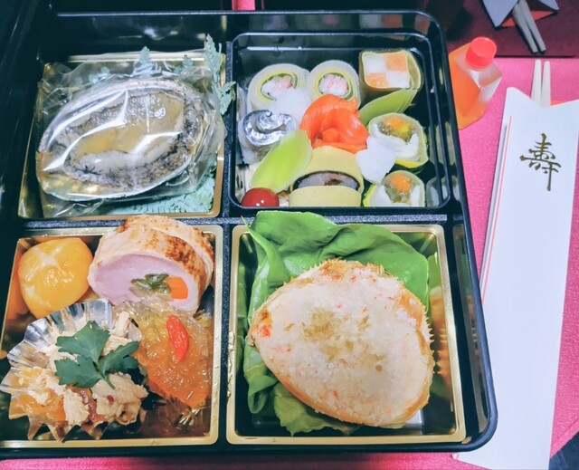 「老舗料亭の和洋折衷のお節を頂く」