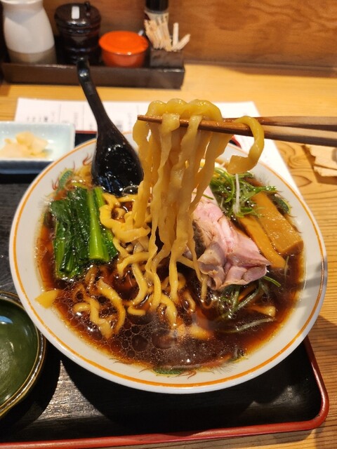 『漆黒の醤油ラーメン』絶品でした‼️(^-^)vあとから【生姜オイル】の味変でコクが増して完成された濃厚醤油ラーメンに変化がgood‼️