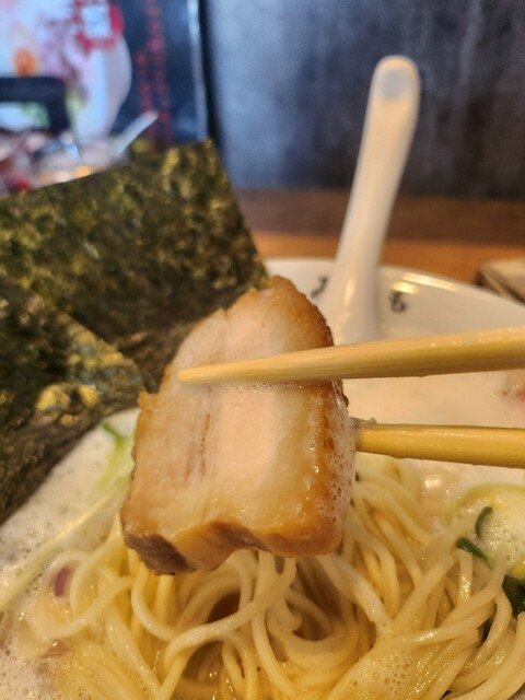 皆さん、こんにちは(^-^)v今回は群馬県伊勢崎市にあります、鶏そば みなもさんにお邪魔致しました‼️時刻は金曜日の10時55分です。一番到着です。今回も初めての来店ですので、一番人気であろう特製鶏泡白湯 塩を発券にて購入致しました。いつも千円冊がなく両替からで、すいません。泡白湯系は初めてなので、どんな味がするのか、楽しみにしていました。お客さまはあとから5名程、来店していましたので人気の雰囲気がありました。早速着丼し、まずスープからいただきますと、クリーミーな塩味、細麺と相性よく馴染んでおりました。チャーシューは3種のレア系、鶏系、豚系?で、味玉も半熟なコラボでした。他のお客さまはオレンジ系のトマト味を頼んでいましたので次回はそちらも、チャレンジしてみたいです。美味しかったです。ごちそうさまでした。(((^^;)