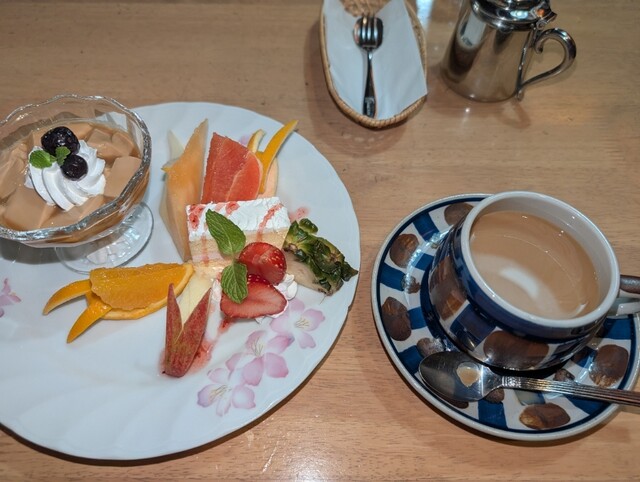 デザートはてんこ盛りで出てきた!!! フルーツにケーキにコーヒーゼリーに
