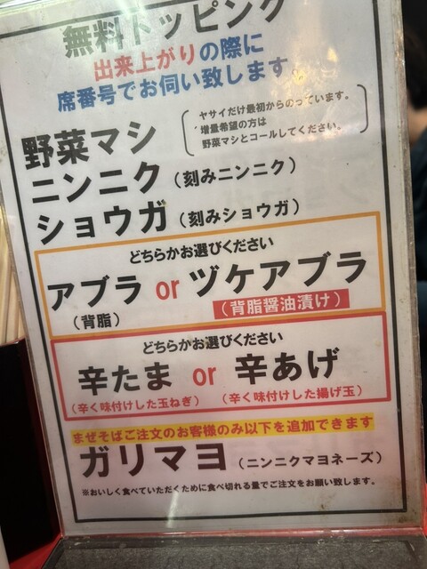 野菜・ニンニク・ショウガ・ヅケアブラ・辛タマ