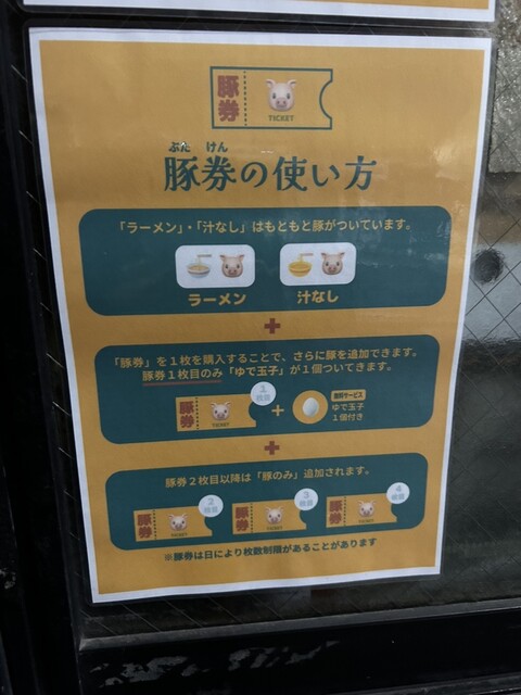 麺の量も細かく選べるので、適量を選びましょう。豚がとにかく大きいので注意が必要です。