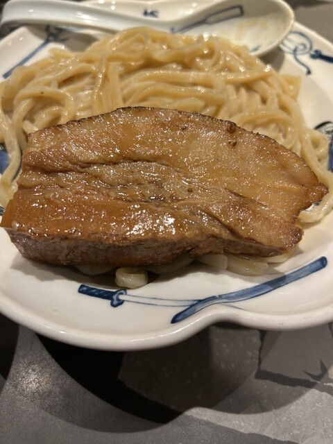 麺は、つけ麺ではオーソドックスな中太ストレート麺。濃厚なスープに負けない小麦の香りがします。ツルッとしながらもモチっとしており、食べ応えが抜群です。