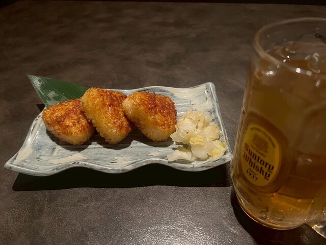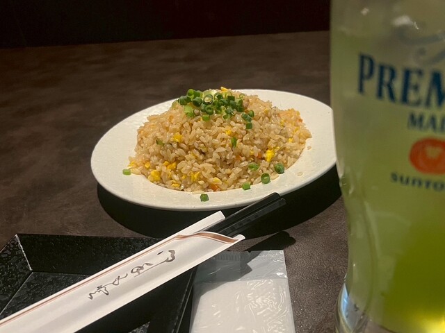 食事の〆には炒飯と焼きおにぎりを選びました。炒飯はシンプルながら香ばしい風味が立ち、パラっと仕上がったご飯に卵とネギが程よく絡み、箸が止まらなくなります。焼きおにぎりは外はカリッと香ばしく、中はふっくらしており、添えられた漬物と一緒に食べると優しい味わいが広がり、締めにぴったりでした。