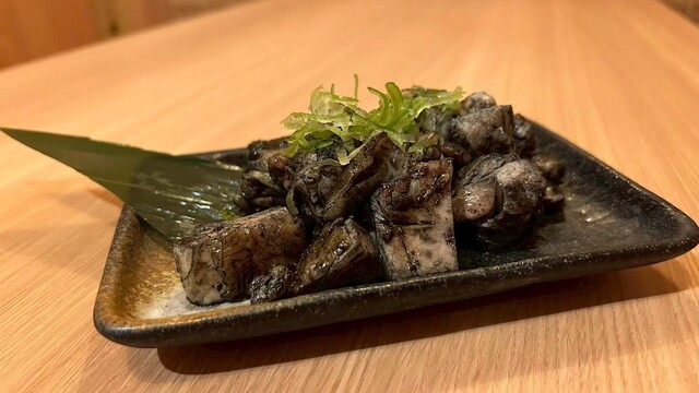 まず印象的だったのが「地鶏の炭火焼き」。黒々とした見た目から香ばしい薫香が立ち上り、噛むほどに地鶏の力強い旨味が広がります。柚子胡椒やレモンで味を引き締めるとさらに絶品。九州を代表する味わいを、都内で手軽に楽しめる贅沢さを感じました。