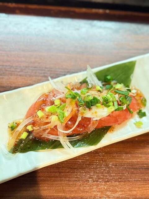 トマトを使った一品は、みずみずしさとほどよい酸味に、薬味の香りがふんわり重なり、シンプルながらも記憶に残る味。派手な演出はないけれど、素材の良さとバランスの取れた味付けで、安心して食べ進められる。全体的に料理はやさしい味わいで、どれも角がなく、会話を楽しみながらゆっくり食べるのにちょうどよかった。