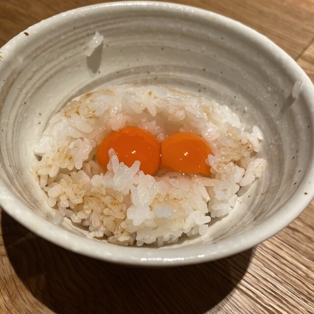 サイドメニューも主役級。香りと苦味が心地よい 春菊のサラダ は、こってりしたハンバーグの合間にぴったりの名脇役。黄身のコクが濃厚な 極みのうずら玉子でつくる卵かけご飯も絶品‼︎