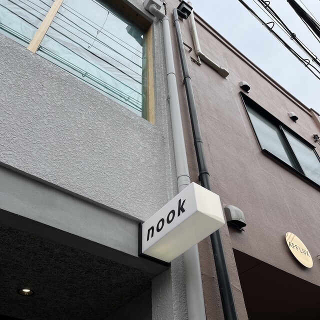 大阪・中崎町の路地を少し入った先にある「nook 中崎町」。古い街並みに溶け込む外観で、初めてでも不思議と落ち着く雰囲気があります。賑やかな梅田エリアから少し離れている分、ゆったりとした時間を過ごしたいときにぴったりのお店です。