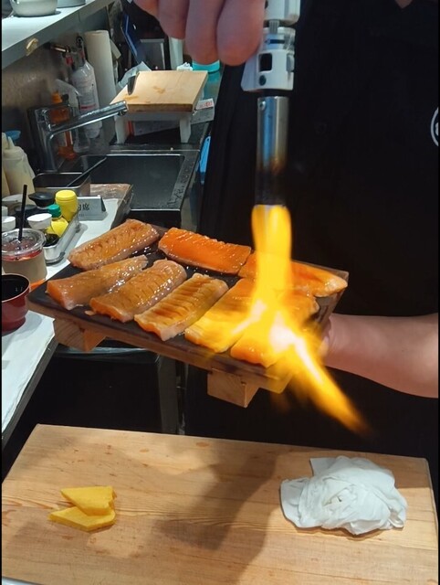目の前で炙っていただいたサーモンがすごく柔らかくて、美味しかったです
