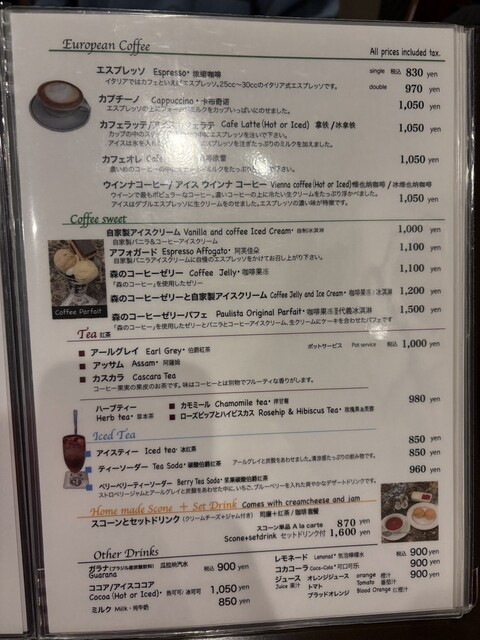 コーヒーはパリ祭を。深みのあるコクとすっきりした後味で、甘いデザートとの相性が抜群。老舗ならではの丁寧に淹れられた一杯は、ゆっくりと味わいたくなる美味しさです。