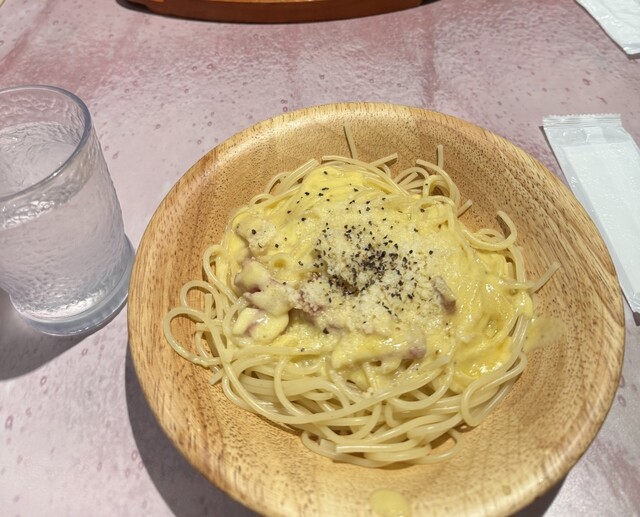 サイゼリヤでカルボナーラを注文しました。ソースは濃すぎず、卵とチーズのまろやかさを感じられて食べやすかったです。ベーコンの塩味がアクセントになっていて、最後まで飽きずに食べられました。値段を考えると量も十分で、学生の食事として満足度が高い一品だと感じました。