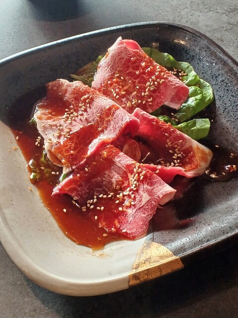 最後にすき焼き風焼きしゃぶ?卵黄に絡めていただきました!これまたお肉は溶けてなくなりタレの味と卵が最高で!一口分の追い飯付き。