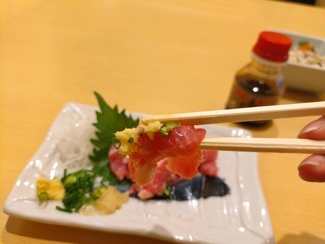 大ぶりで新鮮な生牡蠣。にんじんとネギが添えられ、レモンとポン酢でさっぱりといただけます。つるりとした喉越しが印象的でした。
