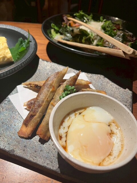 温泉卵にくぐらせていただくと、まろやかさとコクが加わり、より一層奥行きのある味わいに。
