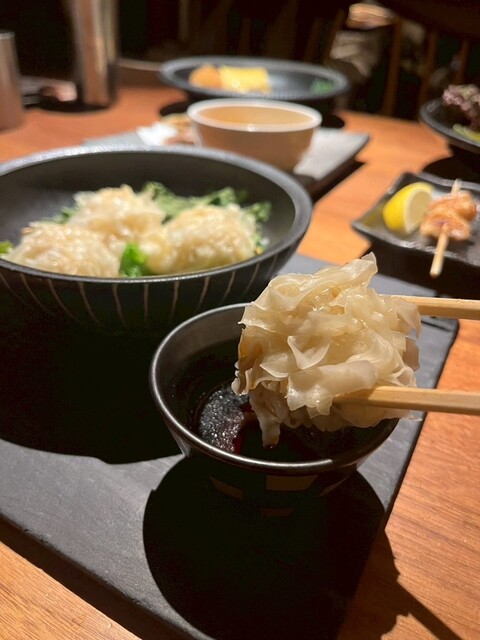 海老と湯葉のチーズ包みは熱々で提供され、ぷりっとした海老の食感と、とろけるチーズの濃厚さが絶妙に調和していました。
