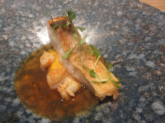 白甘鯛も下のエビもエビのソースも単体としては美味しいのですが、
