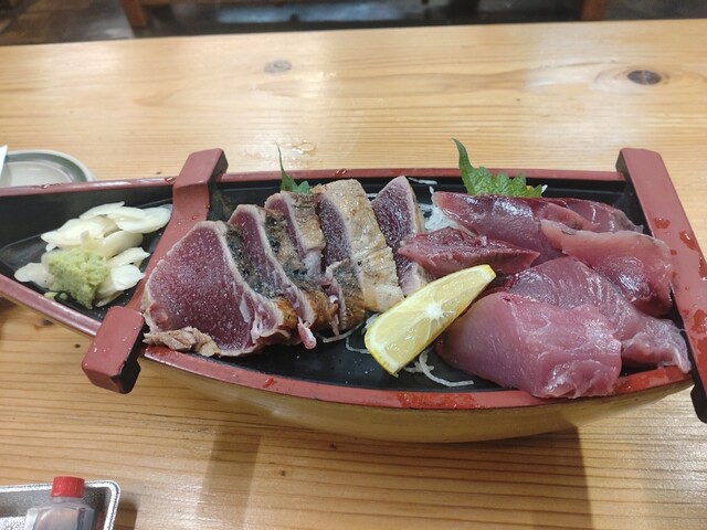 カツオは厚切りで旨し。