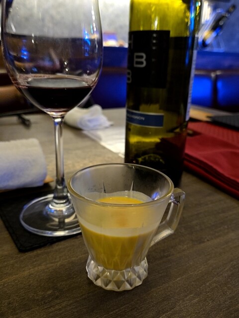 アラカルトでの注文ができますが伊勢海老とA5ランク牛の赤身のステーキのコースを頼みました。メインの他に牛肉あぶりの鮨、前菜3種もり、サラダ、かぼちゃのスープ、ガーリックライス、シヤーベットがあり1時間半ゆっくりと提供されるので、同伴者との会話を楽しみながら料理に合うワインも飲みながら満腹になりました️どれもお洒落なお皿に盛り付けられ味も全て美味しかったです❗
