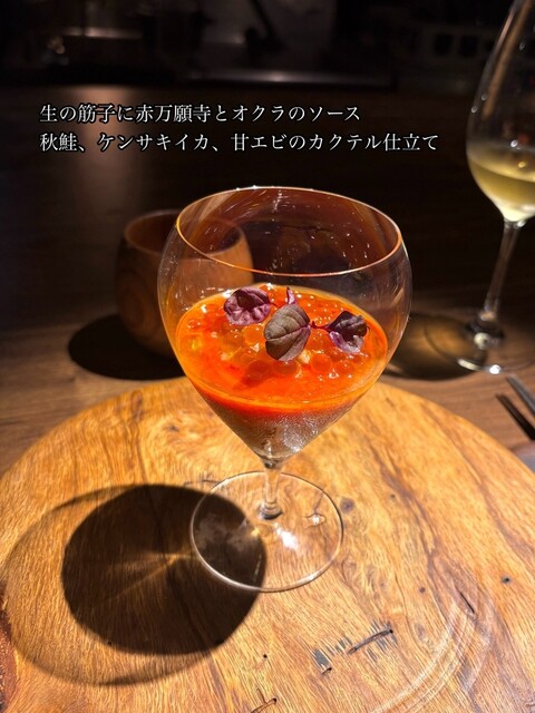 様々な秋の鮮魚を使ったカクテル仕立ては生の筋子や秋鮭などが美味しいのはもちろんのこと、