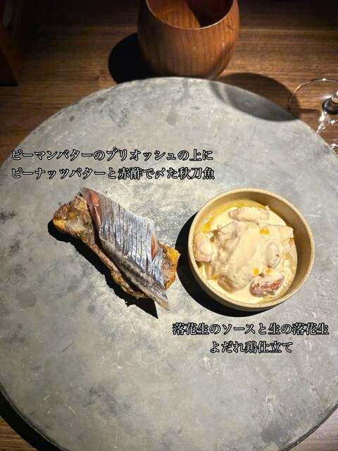 そしてブリオッシュの上に赤酢で〆た脂のりの良い秋刀魚。