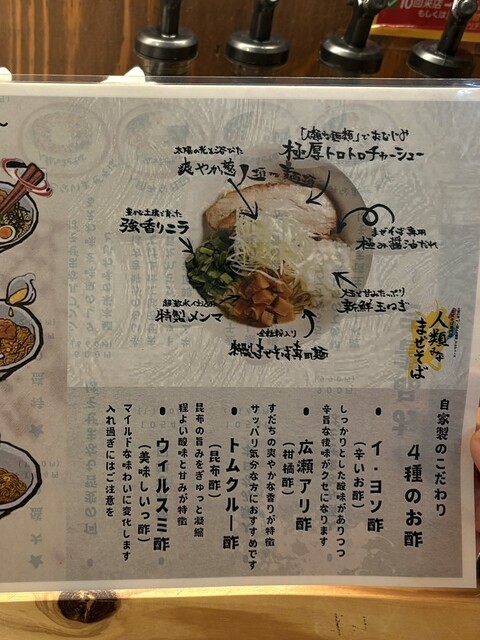 卓上に4種類のお酢があるので、味変で入れてもまた違う味を楽しめて良かったです。