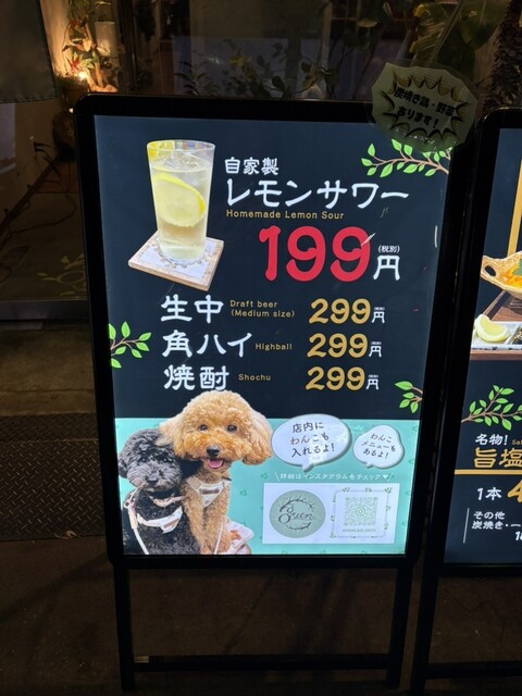 わんちゃんも入店可能なのでわんちゃんと一緒に過ごすことができる居酒屋です。