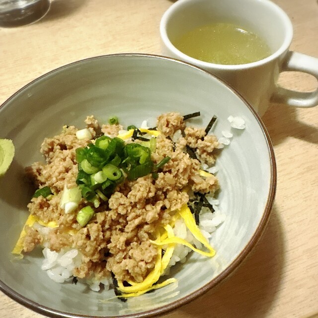 そぼろご飯はハーフにするとスープ付きで、これがまた嬉しいポイント。