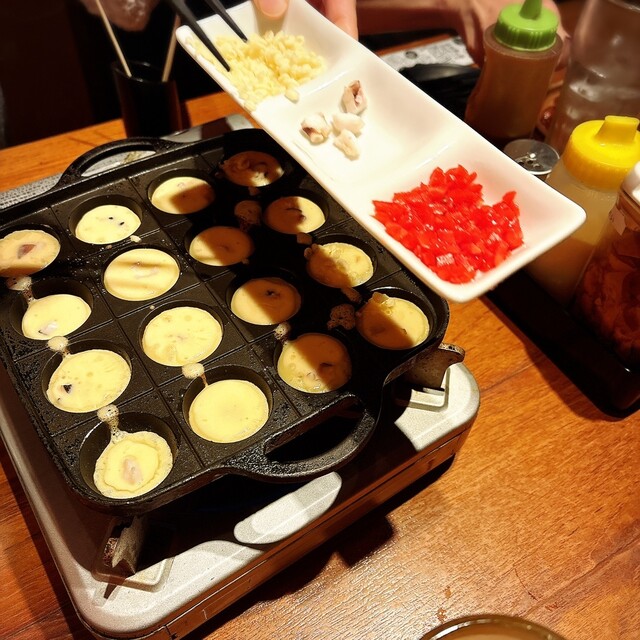 料理も普通に美味しく、たこ焼きを自分で作れるのが地味に楽しい。
