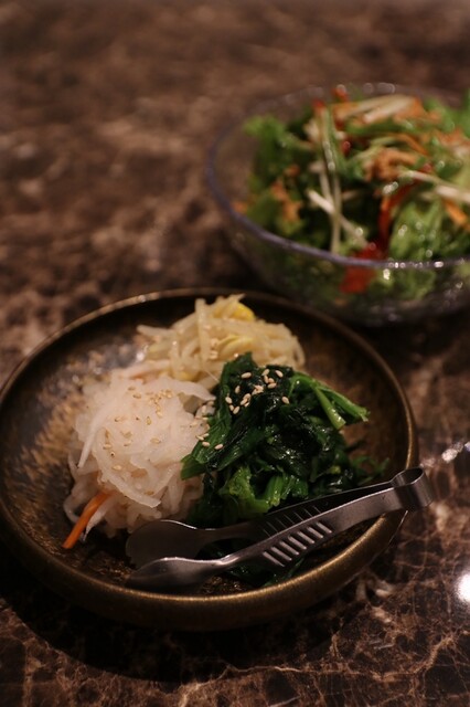 特製薬味や刻みニンニクなどもお肉に合わせて楽しめて、ナムルやキムチ、ホルモン類までコース全体のボリュームもしっかりあり、満足度は高めでした◎