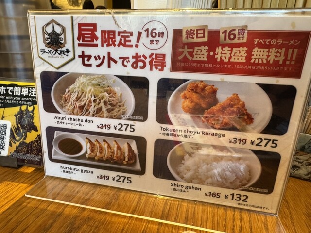 ちなみに、ランチタイム、大盛・特盛・チャーシュー5枚まで同じ料金で、コスパ最高です。ありがとうございます(^人^)