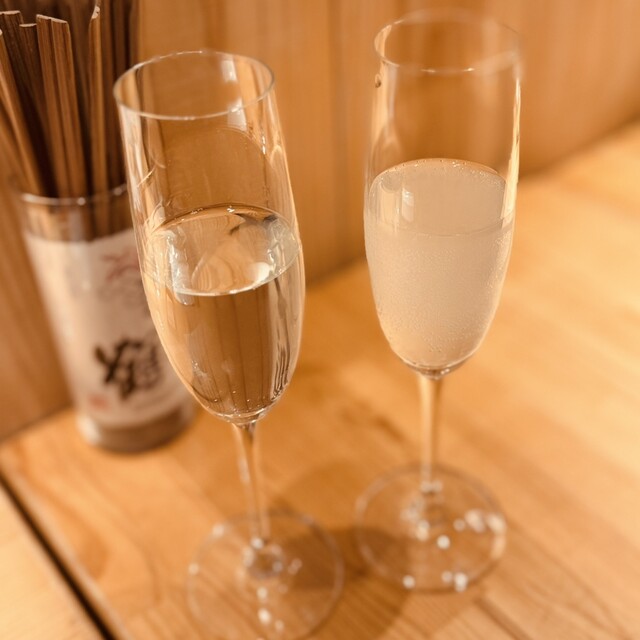 日本酒は注文時に注いでくれます。料理は呼び出し機の音が鳴ったら、カウンターに取りに行くシステムです。