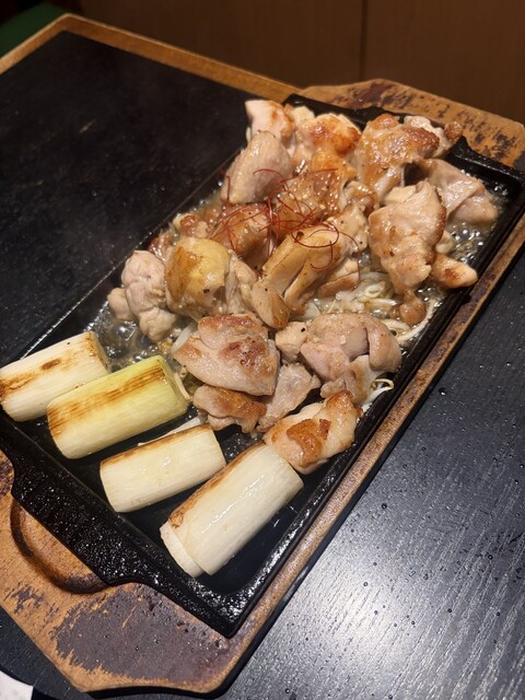 鉄板焼き鳥は運ばれてきてその場で塩ダレをかけ、ジュワー!と音をあげる演出から熱々の焼き鳥を食べれるのでオススメです!