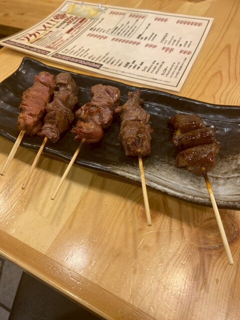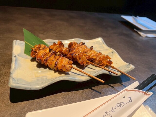 有楽町駅からほど近いビルの4階にある落ち着いた和モダンの空間で、扉付きの完全個室が用意されているので周囲を気にせずゆったり過ごせました。備長炭で丁寧に焼き上げる地鶏の串...