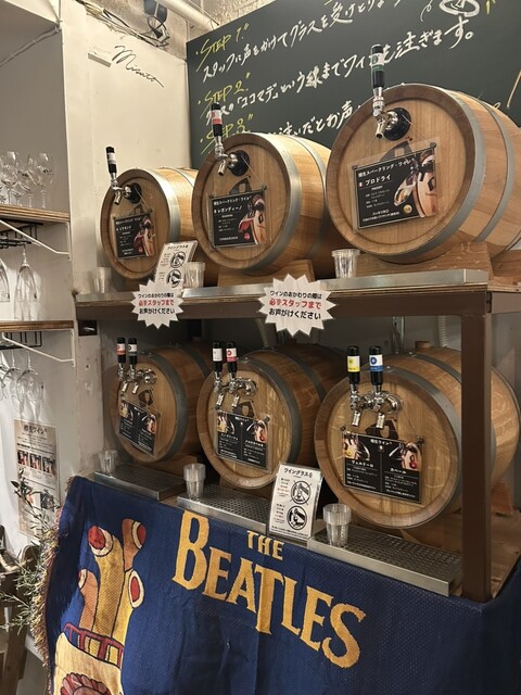 ワインはセルフで樽から注ぐスタイルが面白くて、