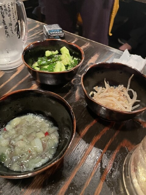 酒飲みにはたまらないお店です。お酒の種類も豊富ながらお酒に合う小皿料理の数々は感嘆ものです。タレで頂いた串焼き5本盛りは写真のテリテリ具合からわかるように絶品でした。個人的にはキムチ豆腐炒めがすごくお酒に合いました。コスパも良くサイコロの出目次第でサワー等が無料になる軽い遊戯などもあり、ラフな関係値の人と行くとすごく盛り上がると思います。