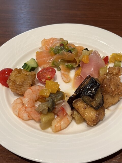 ビュッフェとコースが合わさったような組み立てで、自分で選ぶ楽しみとコースで運ばれてくる出来立ての料理とで、大変満足いくものでした。