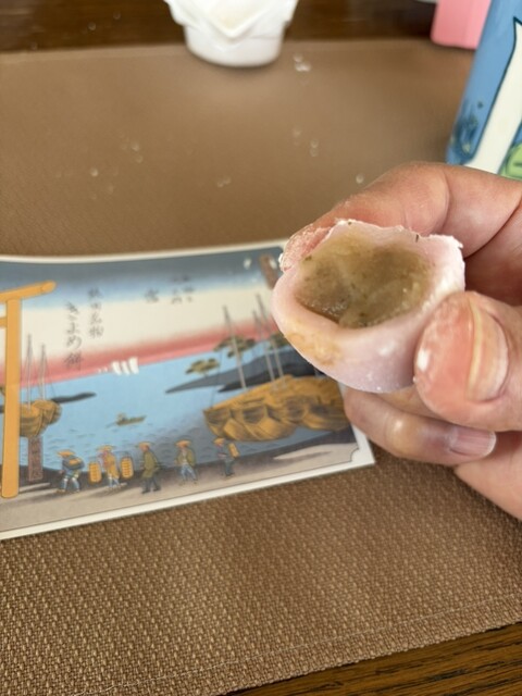 求肥からすでにただならぬ「さくら感」で春を呼んでます。中の餡は通常のこし餡ではなく「さくら餡」で、桜の葉の塩漬けがまた餡の優しい甘味を一層引き立てており、これは絶品でした。