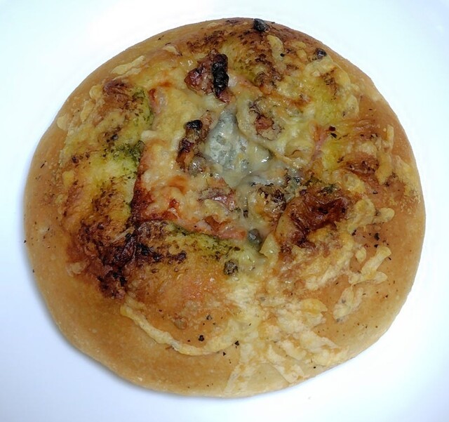ベーコンの塩っ気とコショウのスパイシーさが合わさってパンチのきいた味に仕上がっています。さらに、パンの上の焦げたチーズの香ばしさも見逃せない。ゴルゴンゾーラらしいクセはそれほど感じなかったけど、かなりおいしいパンでした。フォカッチャのもっちり食感も好き♪
