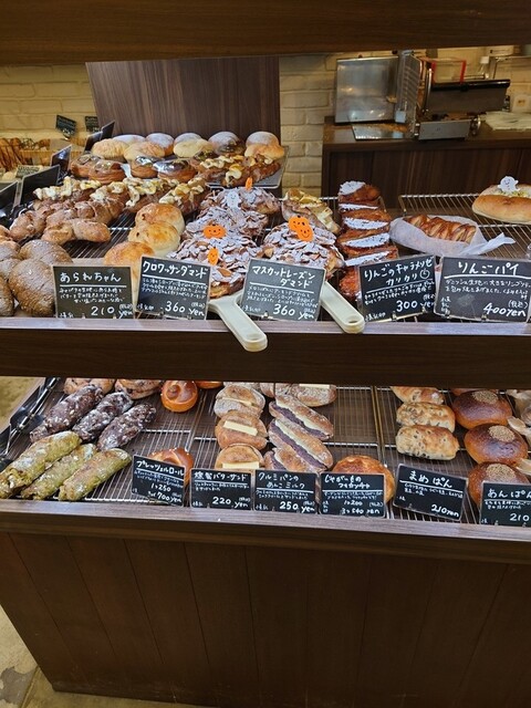 お店の規模はやや小さめだけど、パンはいろんな種類が並んでいて、どれもおいしそうに見える。しかも来た時間帯がよかったのか雨の日だからなのか売り切れているパンもほとんどない!