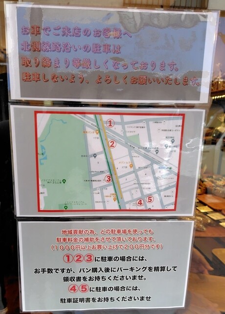 あと、駐車場についてですが、お店の張り紙の情報によると提携しているパーキングがあるようです(添付の画像参照のこと)。