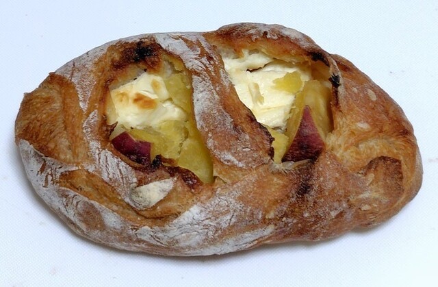 食べてみるとパン生地はちょっとハード目。だけどその分しっかりと小麦のほろ苦さが感じられてうまい♪そしてサツマイモのコクのある甘みと、クリームチーズの酸味ががっちりとスクラムを組んでいる!