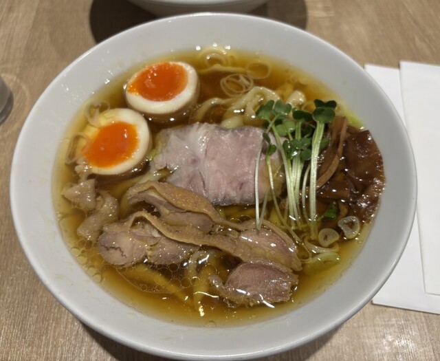 中華そばに味玉をトッピングしました。スープを一口飲んだところ、キリッとした醤油と鶏の旨みが口一杯に広がり、これは美味い、と衝撃を受けました。麺はもちもちのちじれ麺でスープによく絡みます。そして、なんといっても親鳥のチャーシューは、歯応えがあり噛めば噛むほど鶏の旨みを堪能できます。最高の一杯と巡り会えました。