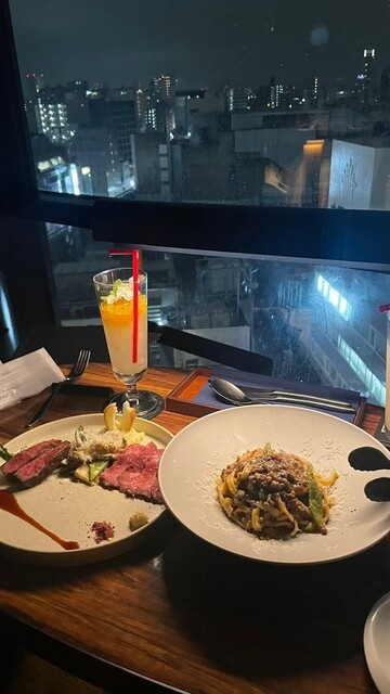 夜景が見えるお洒落な店内と綺麗な料理‼️
