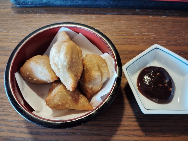 また、「そば団子天」なるものがあり、食べてみました。そば粉を練った団子を天ぷらにしたもので、味噌をつけて食べるのですが、蕎麦の香りがする里芋みたいな感じ。素朴な味でした。